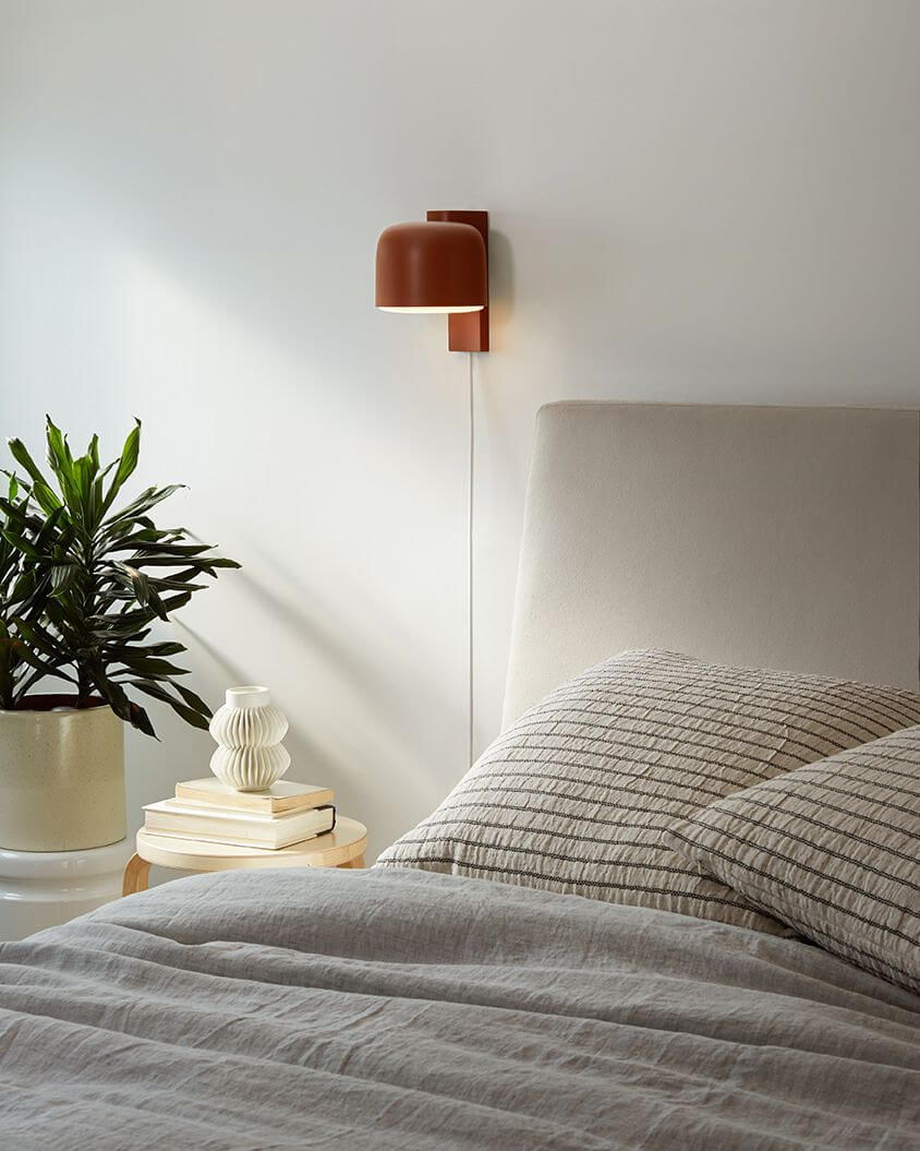 For small apartments, try adding an outward facing Wall Light like the Signal Wall Light directly across from a mirror. Designers commonly use this trick to visually expand a tiny bathroom or a cramped guest bedroom. Need to free up nightstand space? Consider mounting the Gio Wall Light on either side of your bed. Available in colors like Sedona and Stone, the Gio offers a contemporary spin on ‘70s Italian lighting design, making it the perfect choice for both retro-inspired and contemporary homes.