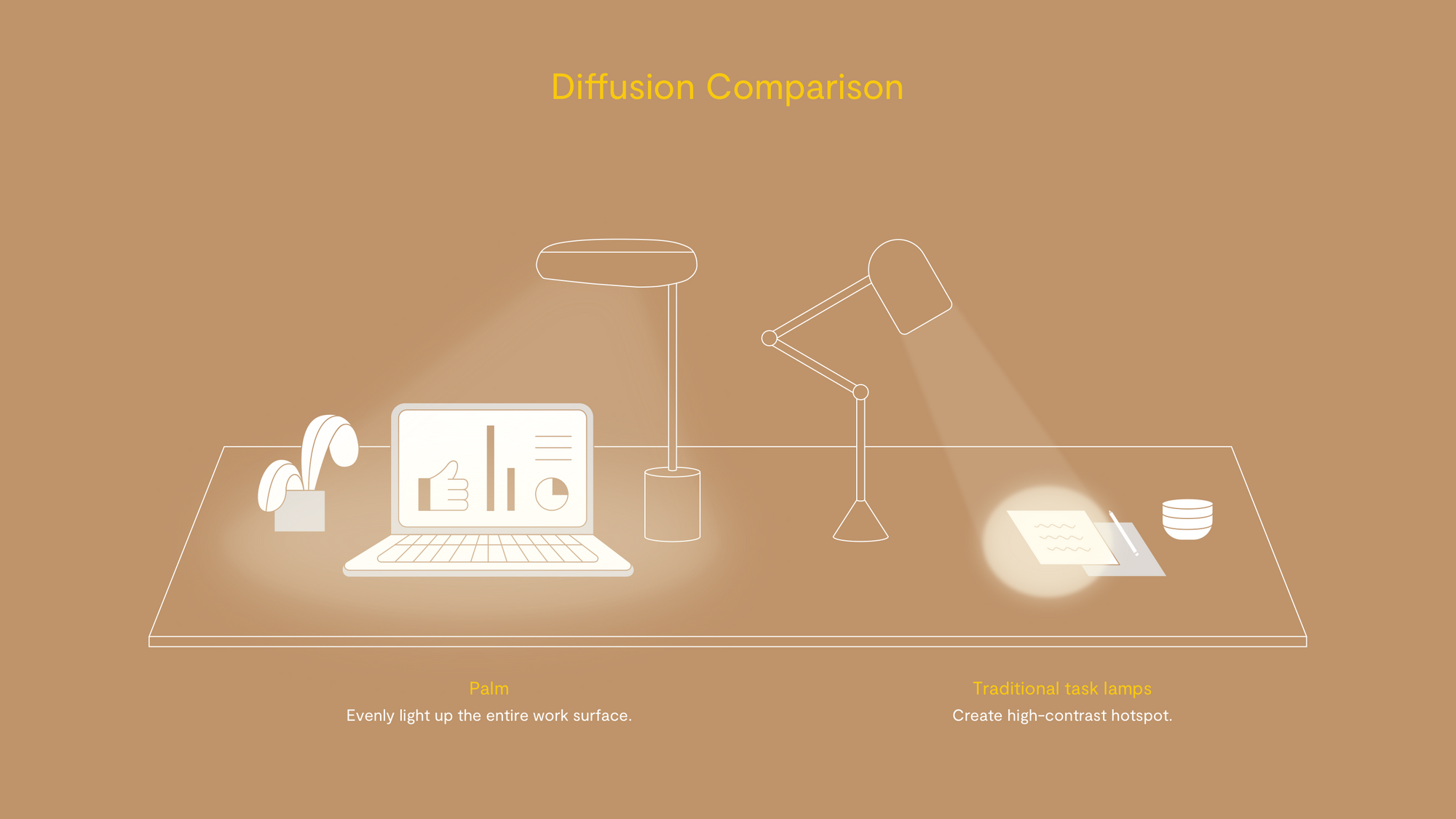 As a symbol of peace and relaxation, Palm represents a completely new approach to task lighting that focuses specifically on creating a calm, mindful work environment that will also boost your productivity. Each style is designed with distinctively soft, rounded edges and engineered to cast a soothing, even diffusion of light on your work surface - perfect for modern workers looking to reduce eye strain. Palm was also created to occupy as little footprint as possible to fit on your desk, nightstand, or in tiny corners with ease. Other features of the entire collection include museum-quality dimmable LEDs, plant based materials, and Gantri’s Made in California quality guarantee.