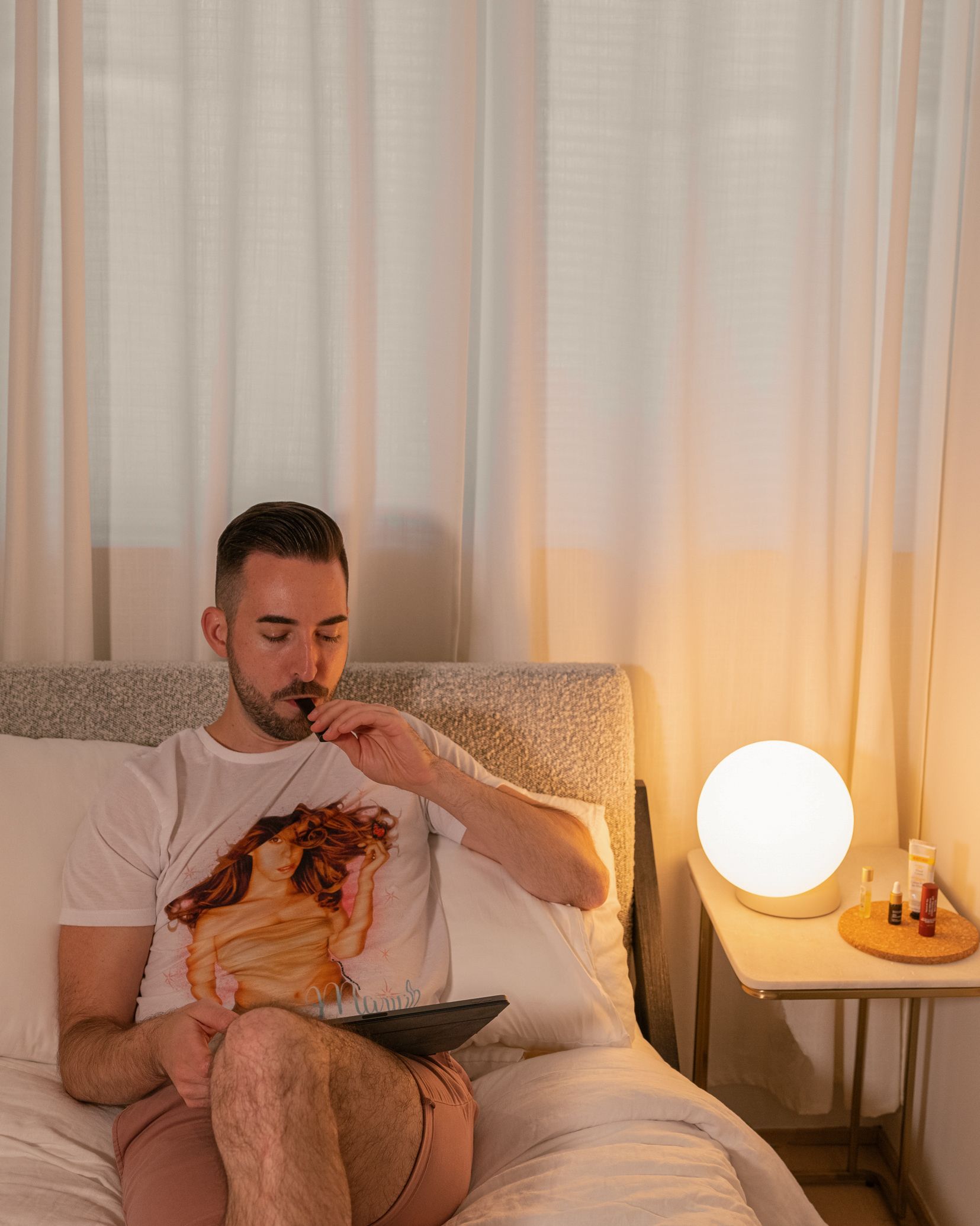The Gantri Cantilever table light is great for the bedside, I actually have mine on my nightstand. I set Cantilever at a slight dim with my iPad and my vape pen in hand as my nighttime routine. You can get a super soft glow on it so it’s perfect for winding down. PyraSphere should be put somewhere it can really stand out and make a statement. Put it in your entryway, on a credenza – mine is on my TV console. It’s definitely meant to be seen.