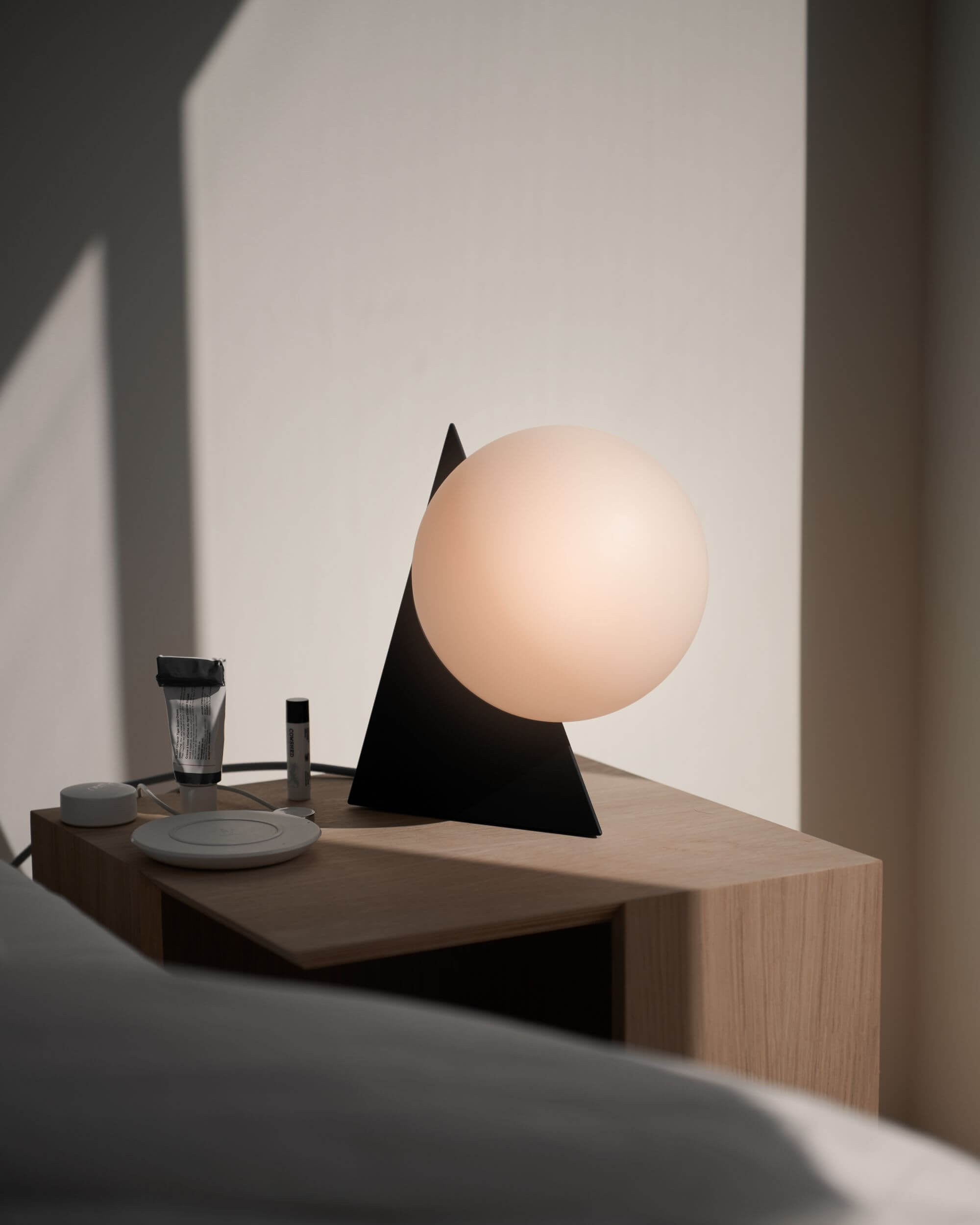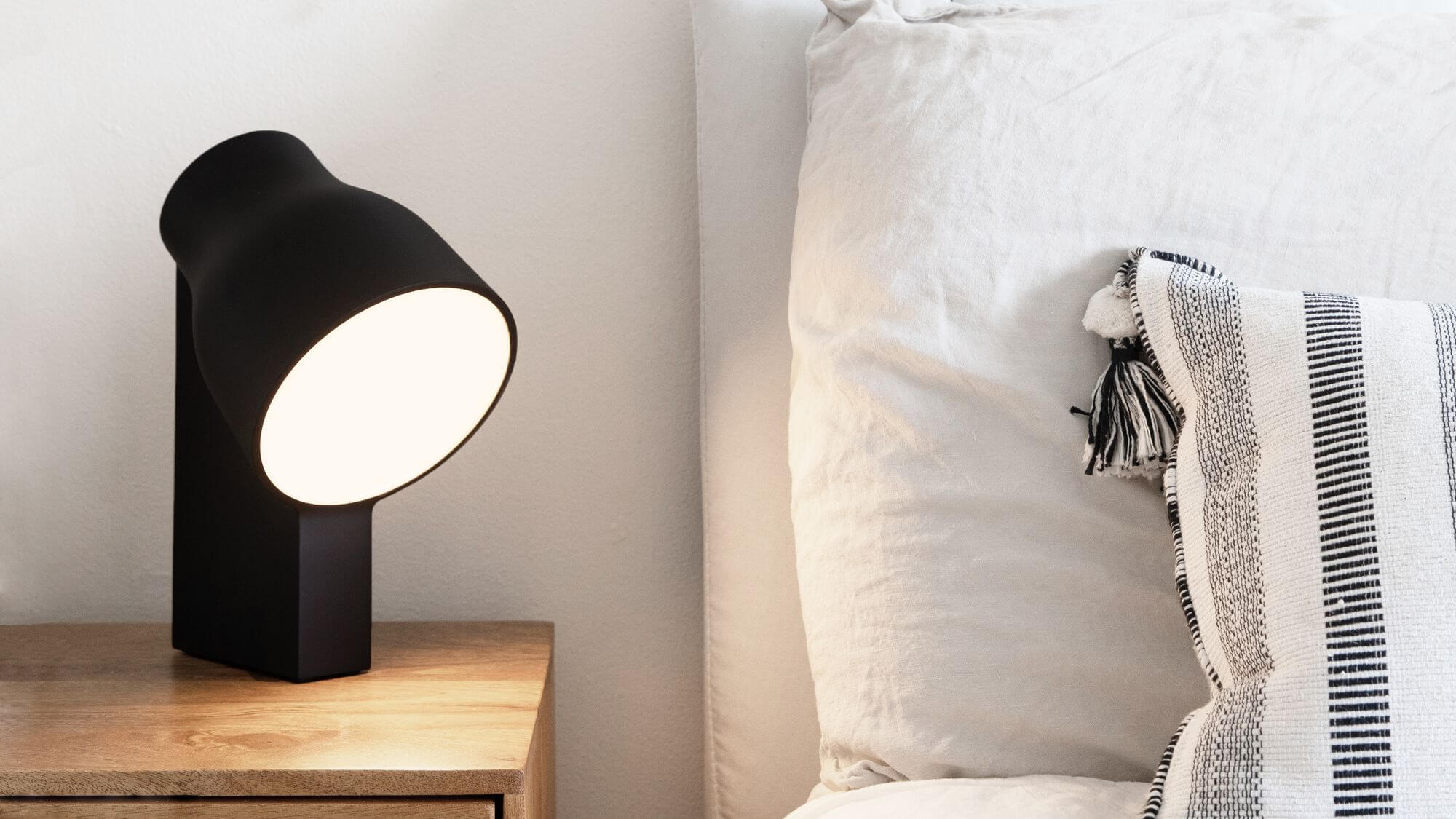 If your partner’s lighting needs are different than yours, try a mis-matched pair of nightstand lights. Maybe your partner loves to craft in bed, requiring a nightstand light with a wider footprint, while you prefer a gentle but directed light that will reach only a few inches so you can read a book or flip through a magazine at night. In this case, your partner might be best served by the Maskor Table Light by Muka Design Lab or the Signal Wall Light by Ammunition. Both lights offer wide swaths of diffused light, easily flooding the area with enough light to work by without overwhelming your partner’s eyes.