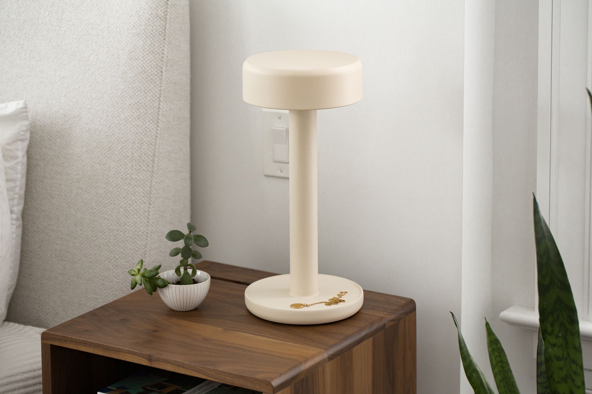 This updated mushroom-like light is simple and soft, keeping harsh angles at bay while the base features a shallow tray to easily store keys and spare change. Let Artifox help you stay organized in the new year.