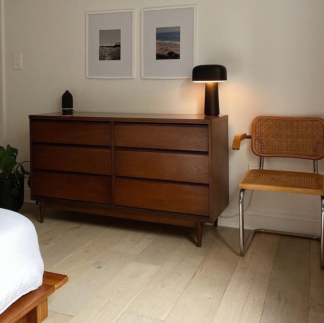 Things get moody with this Maskor Table Light placement. We love seeing our lights add a little something extra to a credenza.
