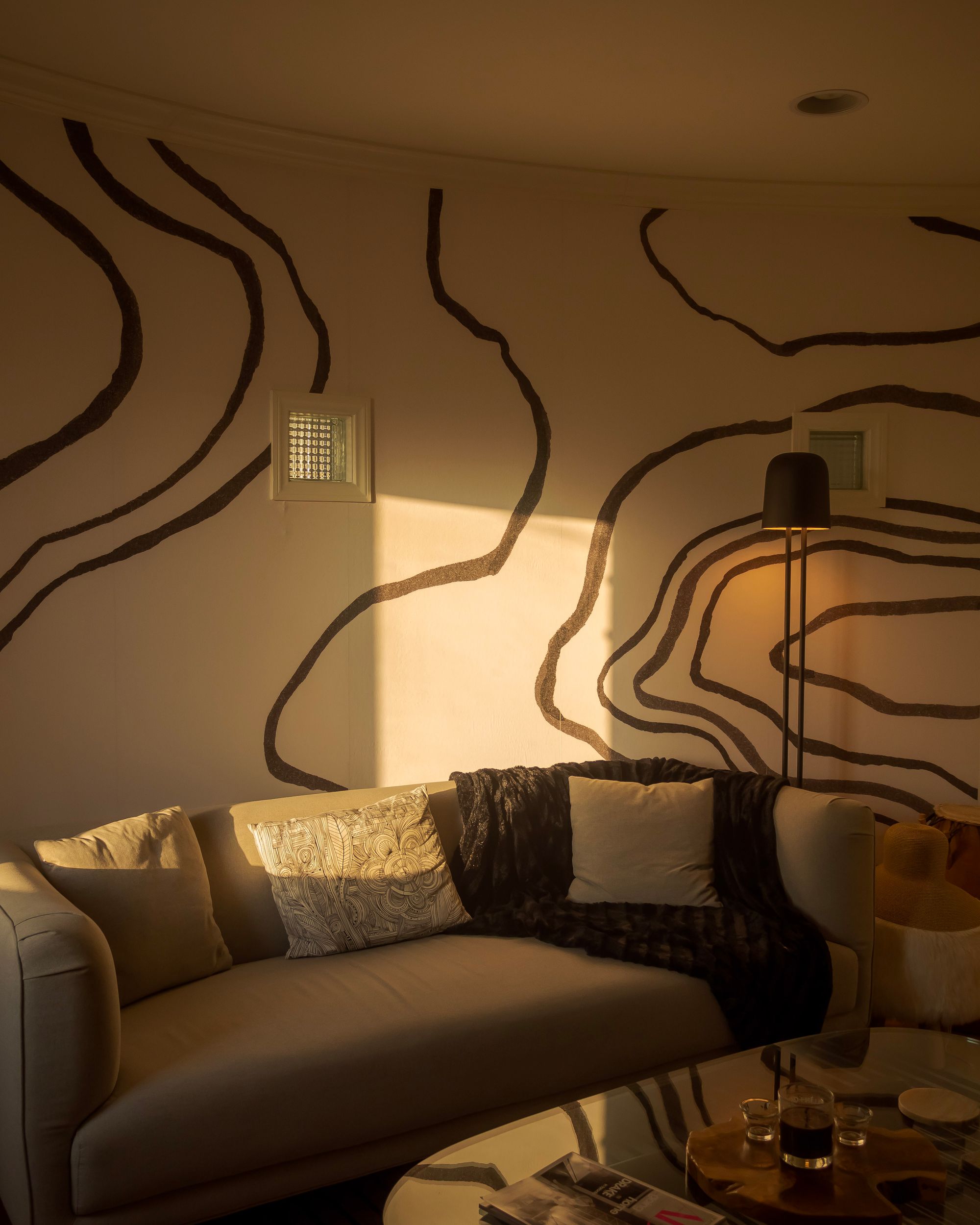 A: I mean first and foremost, I love products that seamlessly marry form and function and I think that Gantri has mastered that. To use that as an example, when we chose our Gantri lights we wanted to ensure they were both providing optimal lighting throughout the space but also making a statement. I have a lot of Gantri lights in various rooms, and I try to have them balance harmoniously. I have the Palm Floor Light in my living room and love the pop of yellow color there. I turn it on around 5pm and it has a soft glow for the coziest vibe. My cat loves it. Every light has a time and place. Nothing feels excessive. Layered lighting is so important to create a comforting, intuitive feel.